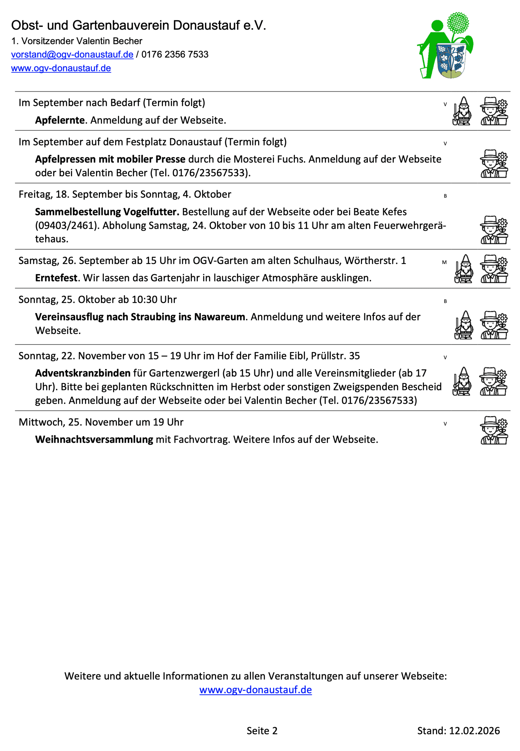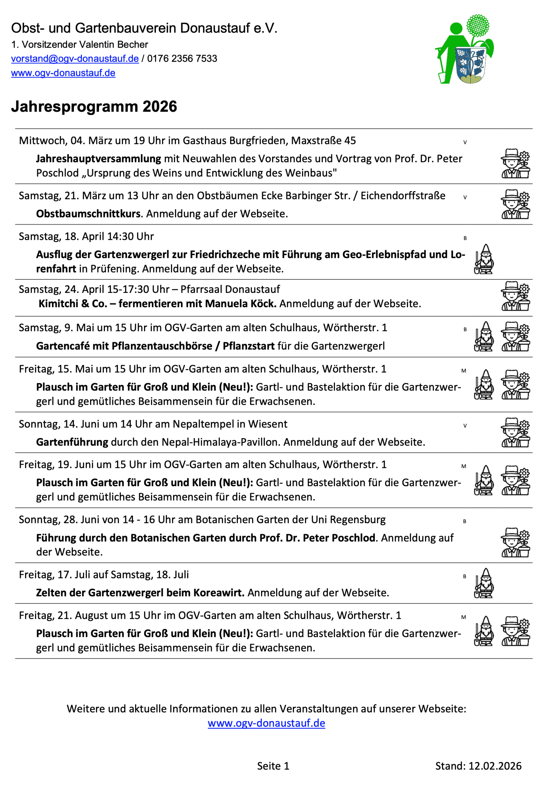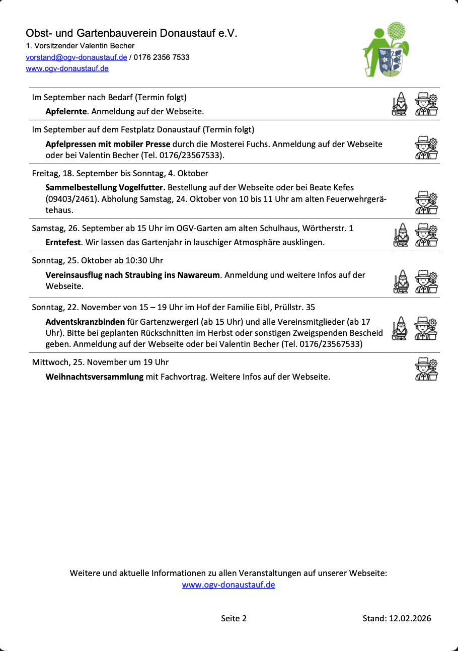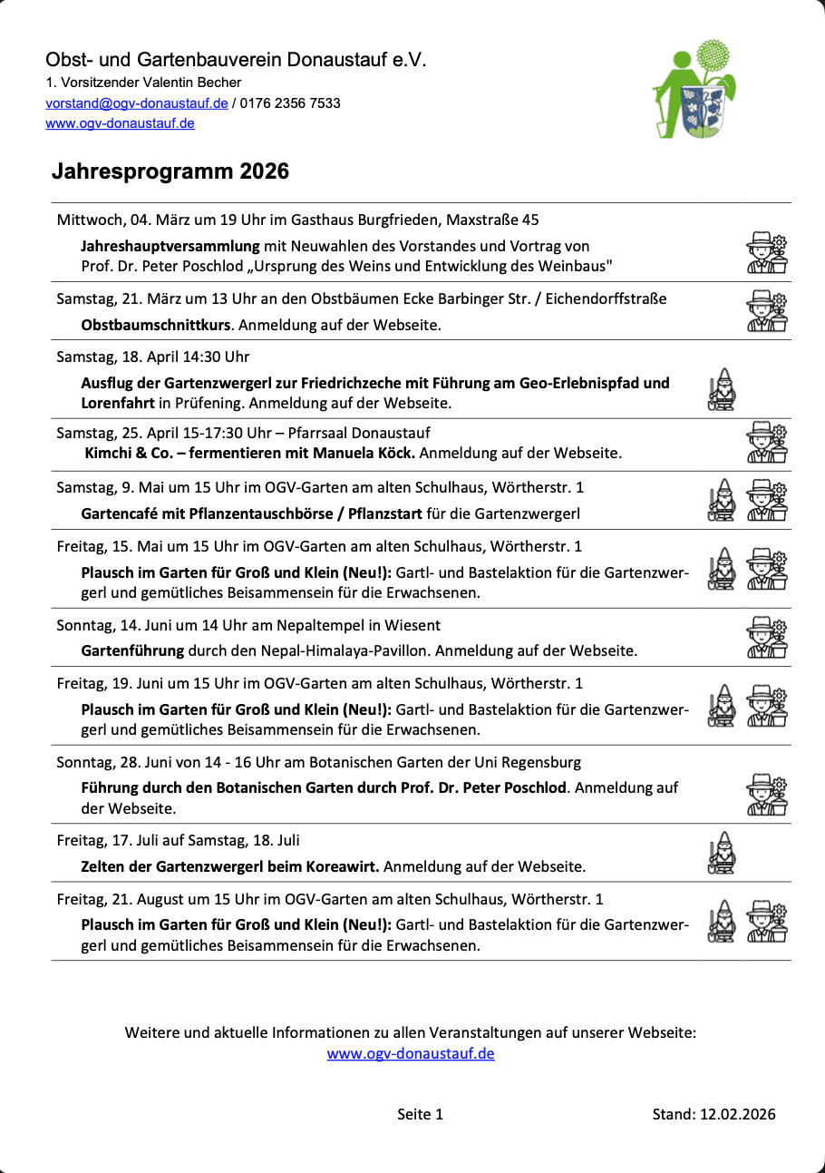 Kontakt: Valentin Becher Mail: vorstand@ogv-donaustauf.de